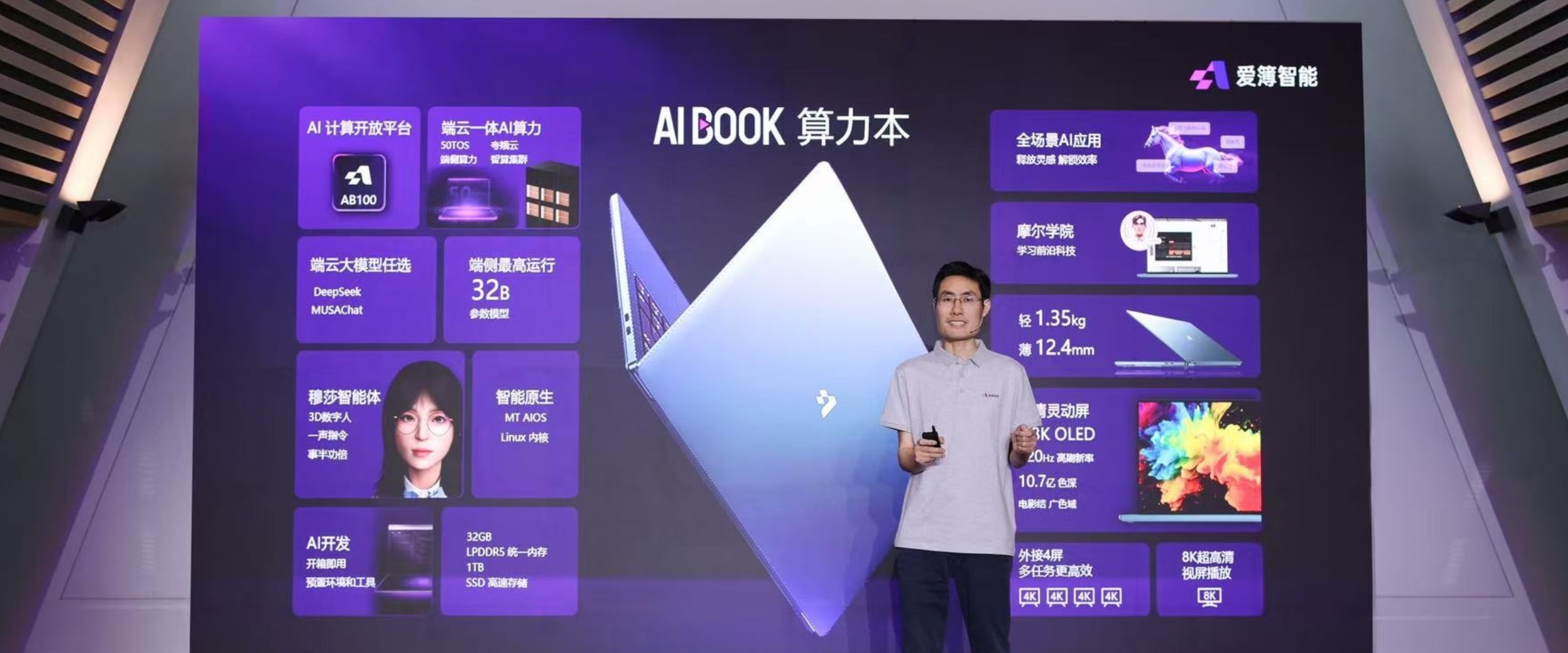2025年4月7日,北京——爱簿智能今日正式发布革命性产品AIBOOK,行业首款"算力本"暨首台Linux AI开发本。该产品以50TOPS端侧算力为核心,搭载Linux原生环境及开箱即用的AI开发工具套件,通过端云一体架构实现“AI实训”能力,同时将强大功能浓缩于轻薄机身,旨在重新定义个人AI生产力工具的行业标准。作为"个人AI智算中心"的开创性产品,AIBOOK的问世将推动"人人都是开发者"的时代愿景迈入现实。
