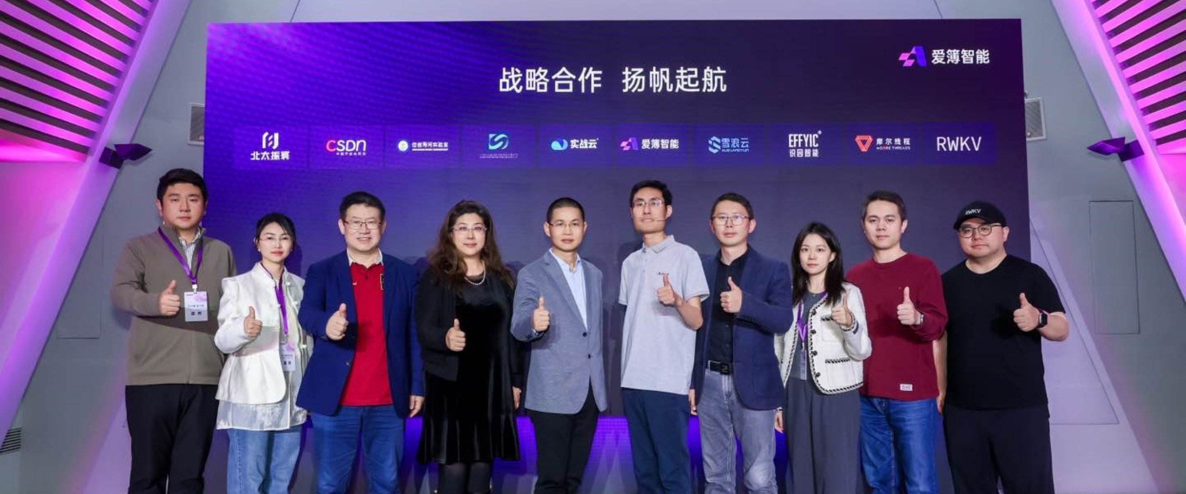 为推动这一愿景实现,爱簿智能联合北太振寰、CSDN、海河实验室、摩尔线程、RWKV、引力波、实战云、雪浪云、识因智能等合作伙伴(排名不分先后),覆盖人工智能、教育、工业、政务等多个领域,旨在推动AI在不同行业开花落地,为AI的开放与普惠注入生态动能。