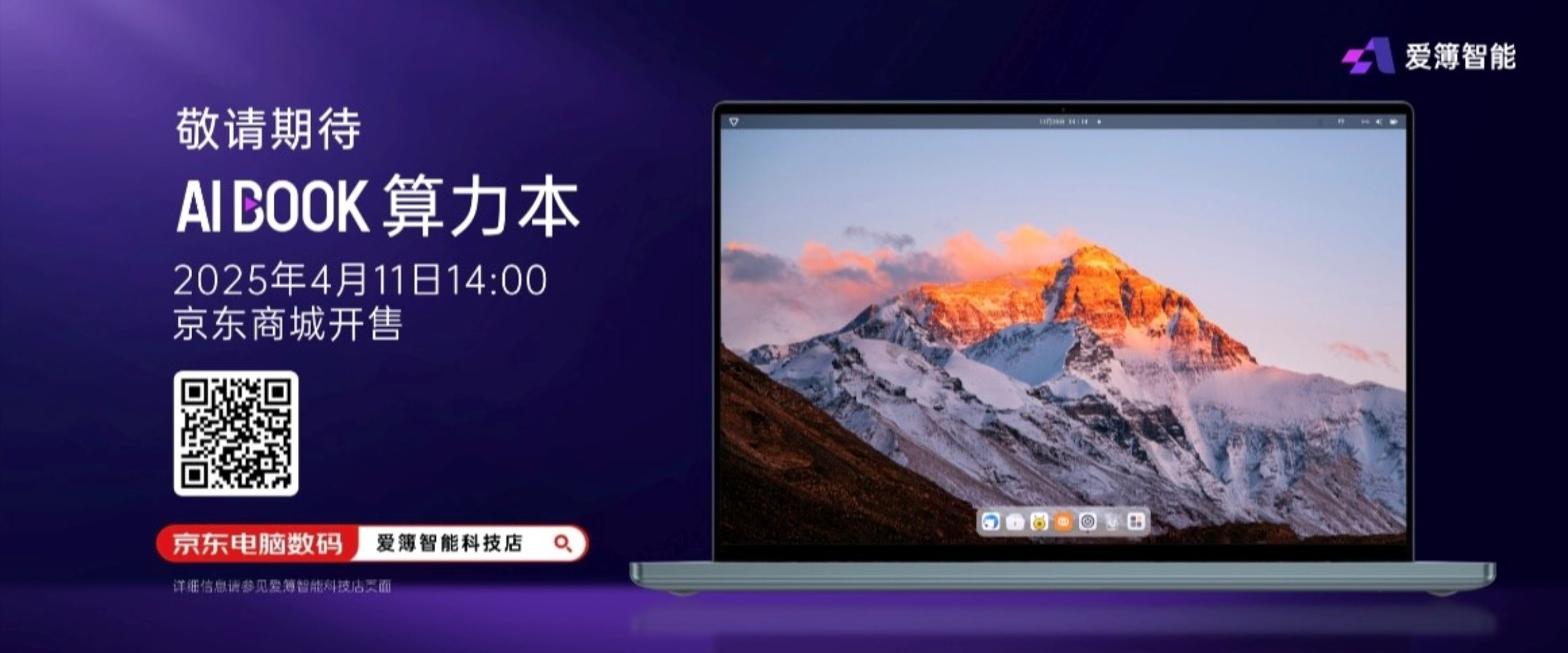 售价及发售平台:AIBOOK算力本将于4月11日14:00将在京东平台爱簿智能科技店开启预售,敬请关注。